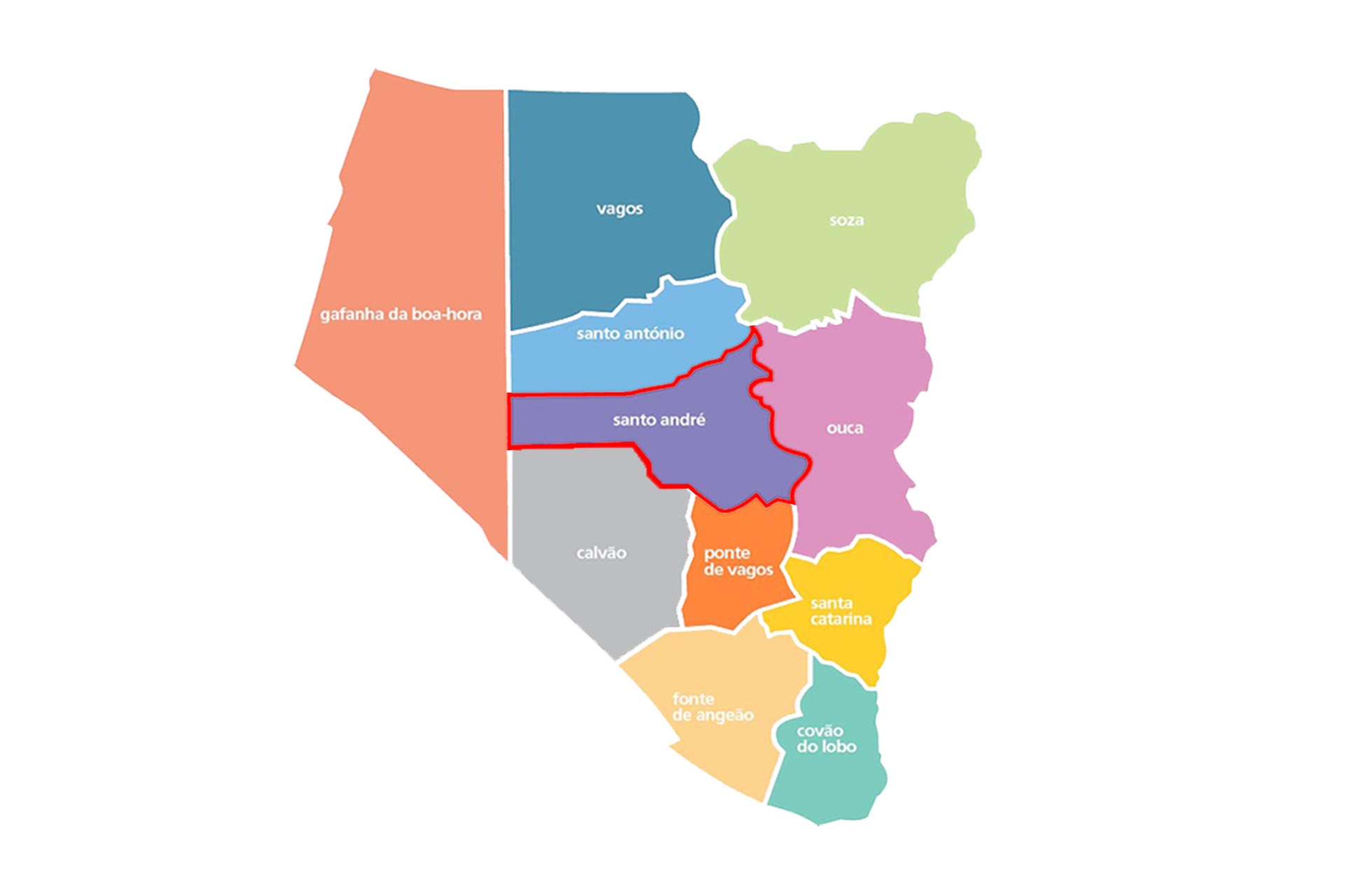 Os limites de Santo André de Vagos seguem o curso do rio Boco, afluente da ria de Aveiro.